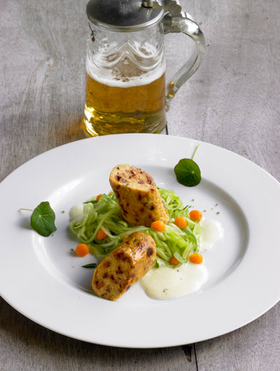 Kastanienlaibchen, junger Spitzkohl und Rotweinsauce