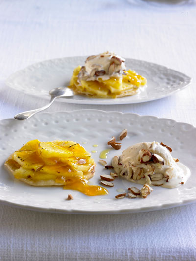 Zimtparfait, Birnen-Carpaccio, und Florentiner