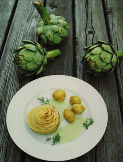 Kohlrabi-Estragonsuppe, Broccoli Terrine mit Senfvinaigrette