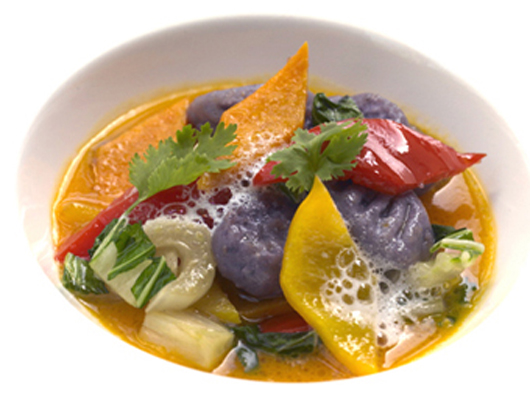 Kürbisgnocchi, Spitzkohl in Chili Orangen Jus