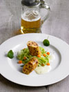 Bulgur im Reisblatt mit gebratenen Paprika und Preiselbeersafterl
