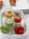 Hellgrüne Lauchsuppe, Tomatengelee und Basilikumsauce